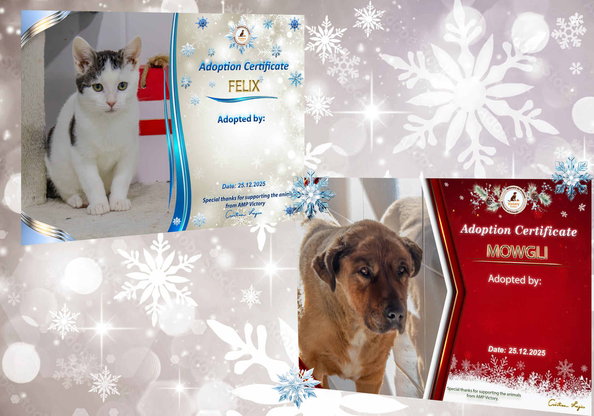 Purchasing the Christmas Adoption Certificate, you make a direct contribution to the care of your chosen pet: food, medical treatment, vaccines, comfort and protection in The AMP Victory Shelter.