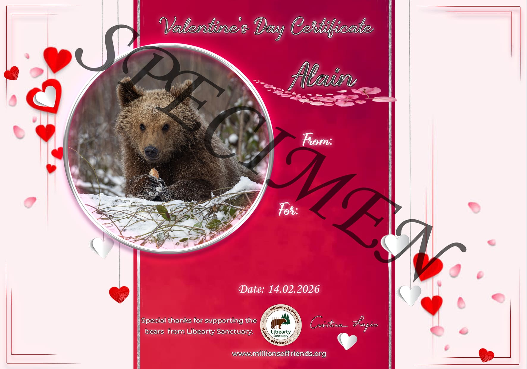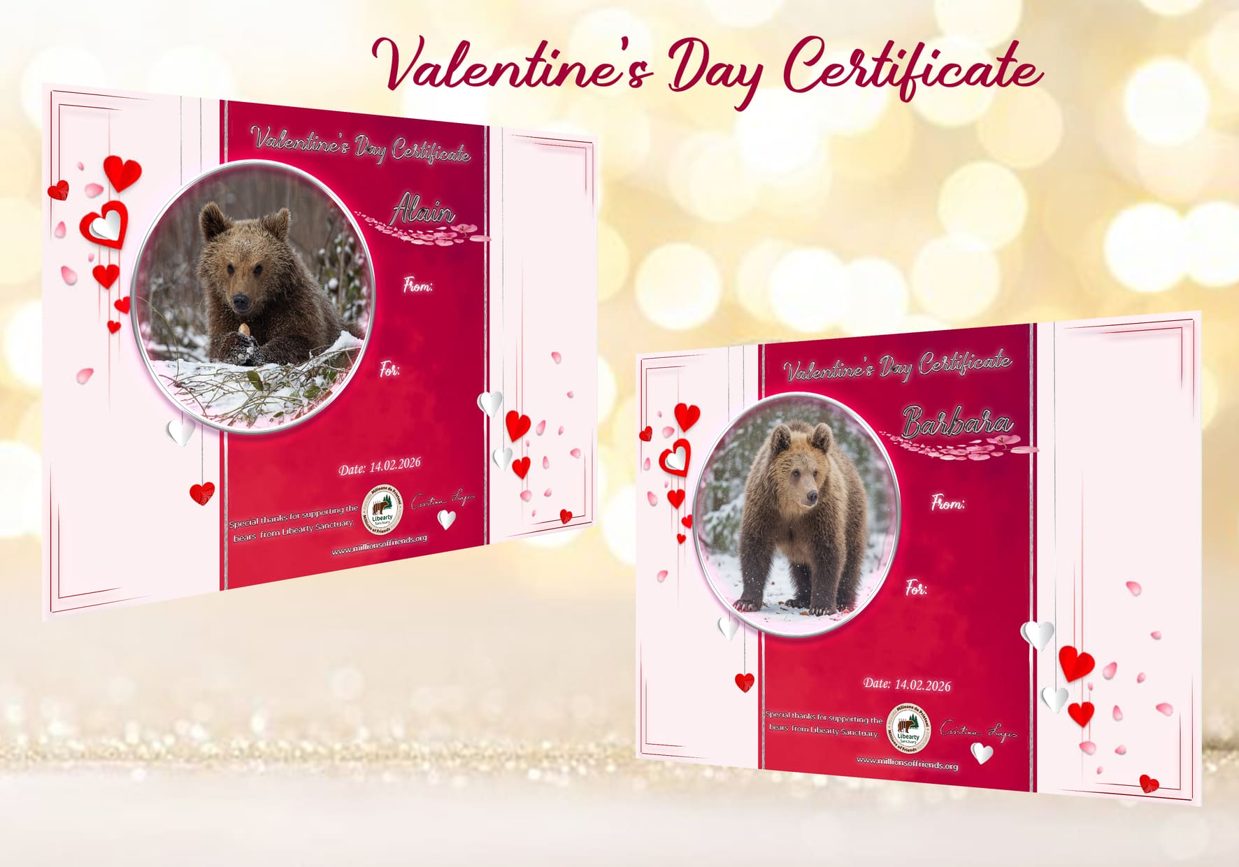 With your donation, you offer a special, meaningful gift: shelter, food and care for all the bears at the Libearty Sanctuary – and you will obtain the title of protector of a bear cub for your loved one.